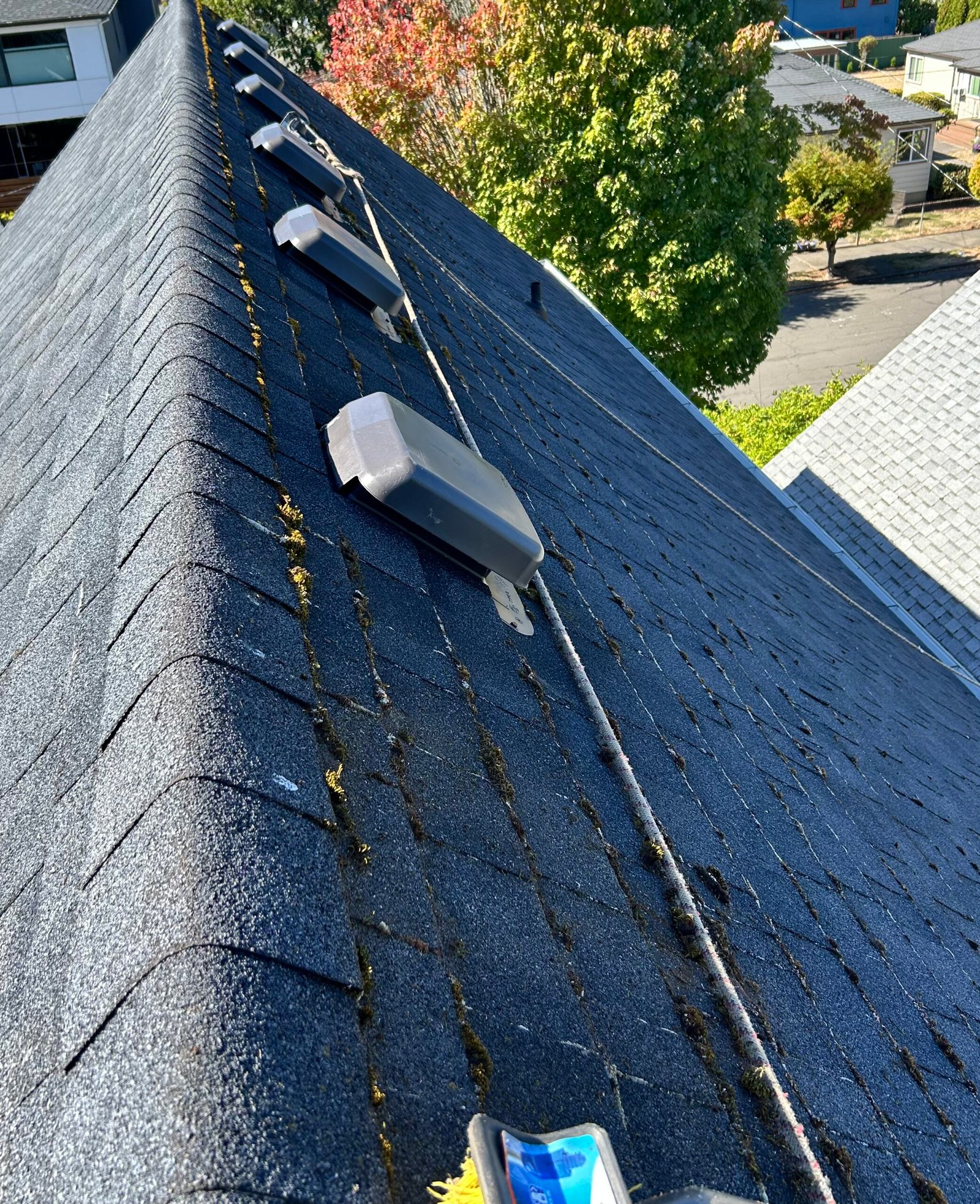 Professional Roof cleaning to maintain a healthy roof! Our technicians are trained on how to use your Home’s anchoring System.
